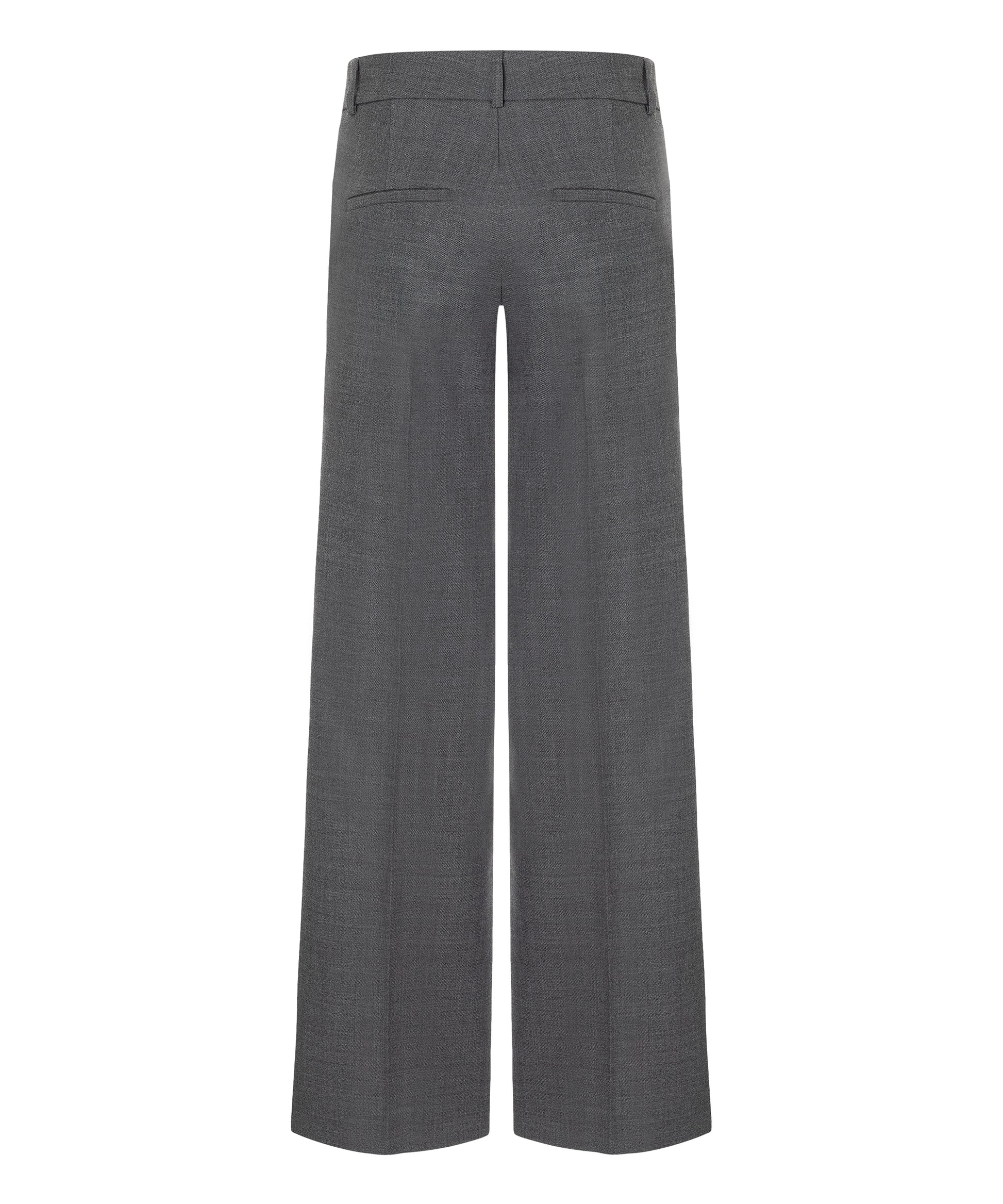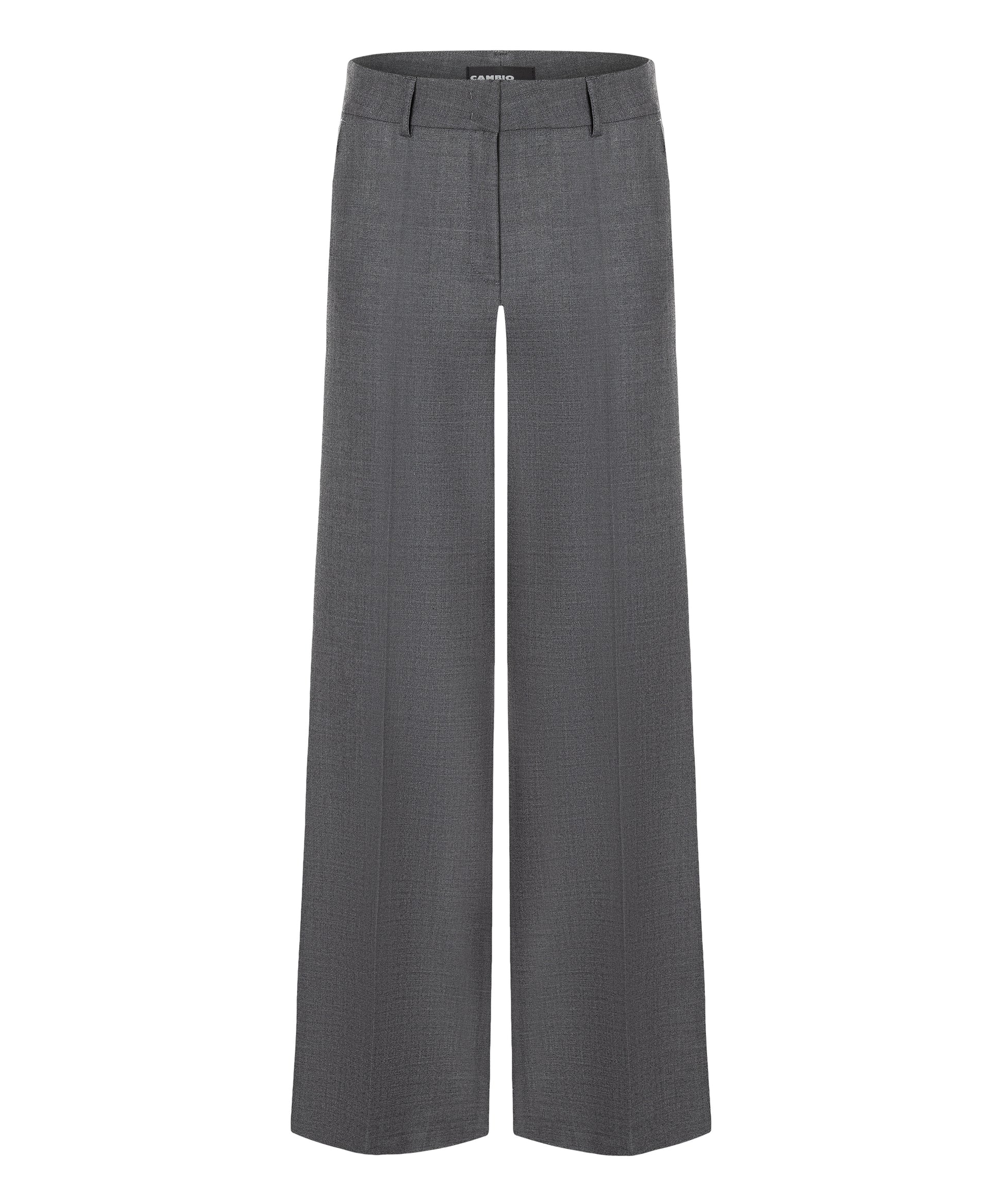 Grijze pantalon van Cambio in een fijne stretchkwaliteit. Hoog in de taille, steekzakken en rechte pijpen.