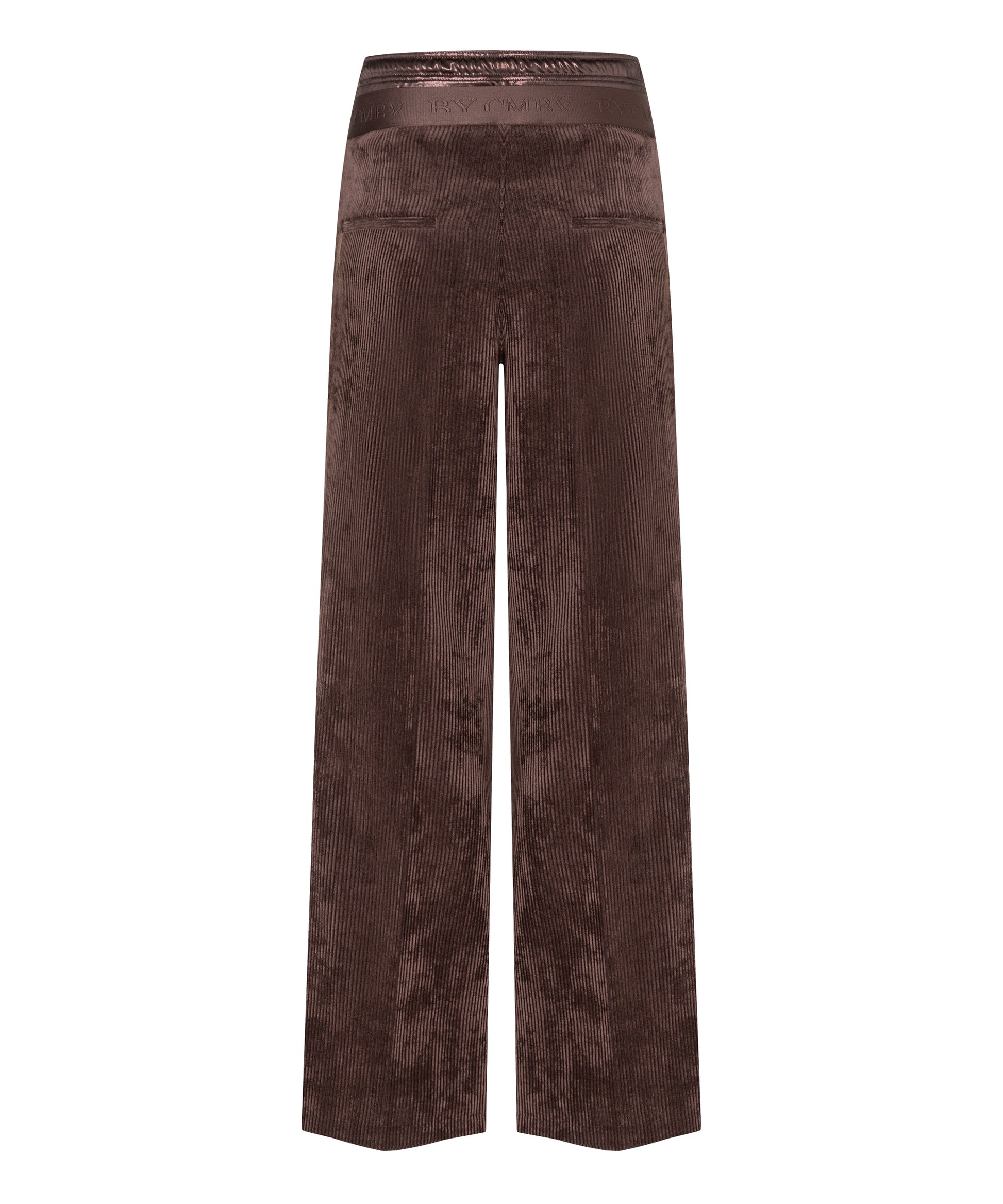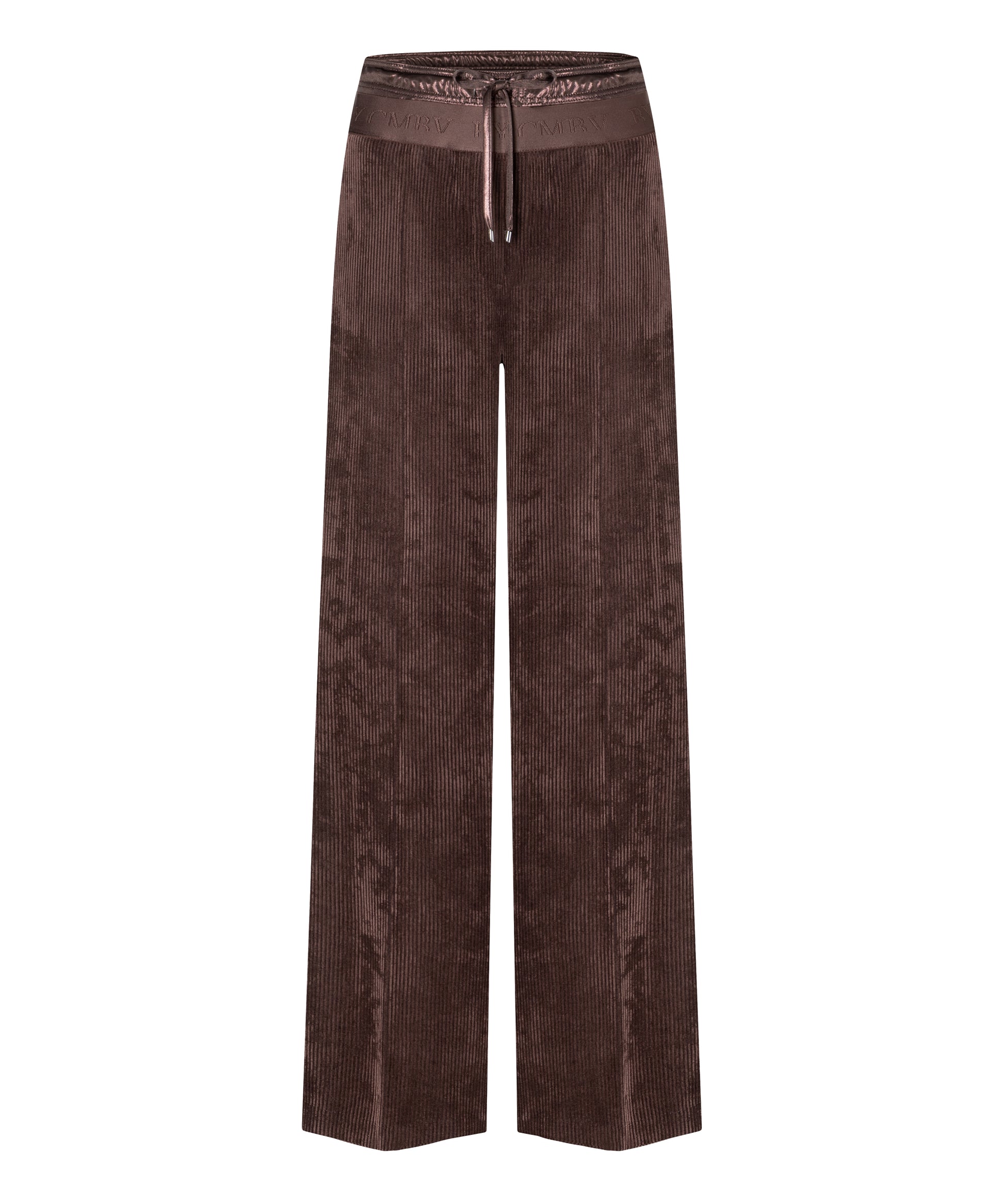 Fijne ribbroek van Cambio met een dubbele, elastische boord. De boord kunt u aansnoeren dmv een koord. Steekzakken en wijdere pijpen.