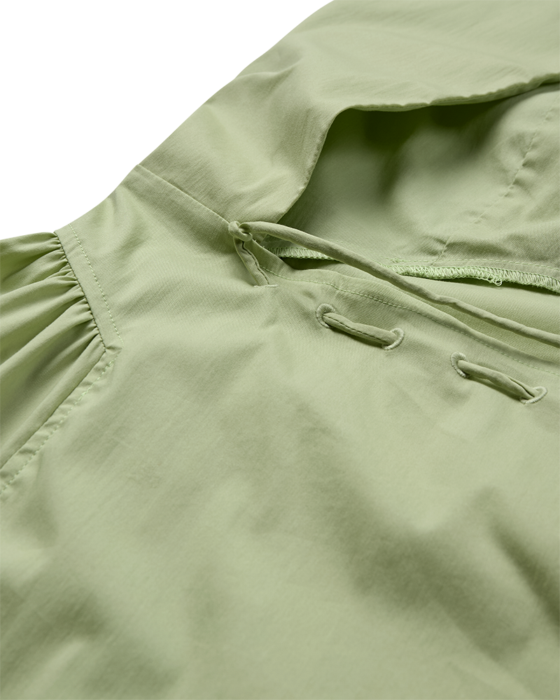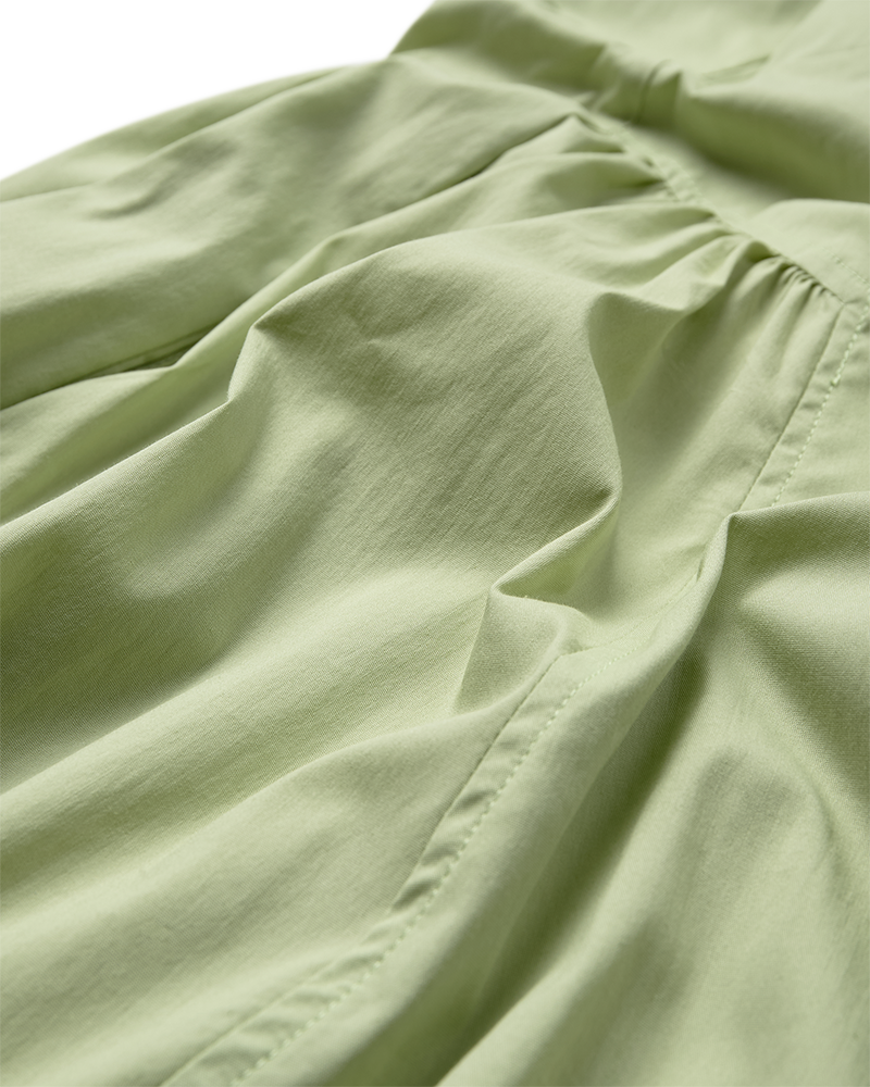 De CMPOPPI-jurk is gemaakt van een hoogwaardig materiaal met subtiele stikdetails, een wijde rok met plooien en een open rug met knoopsluiting in de hals. Daarnaast heeft de jurk een verstelbaar trekkoord in de taille voor een elegante look.