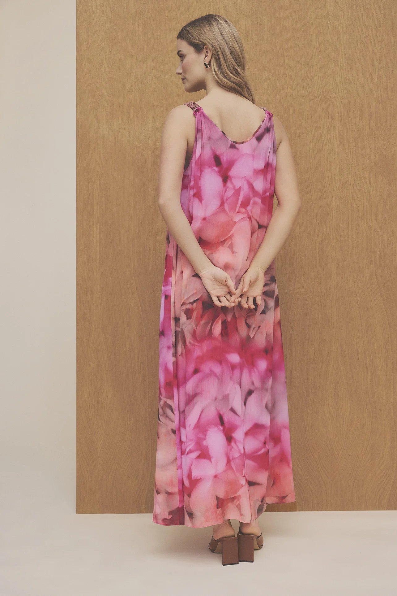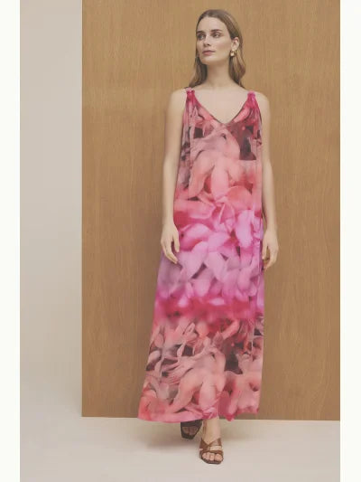 Kleurrijke, wijde jurk van Gustav met bijpassende centuur.