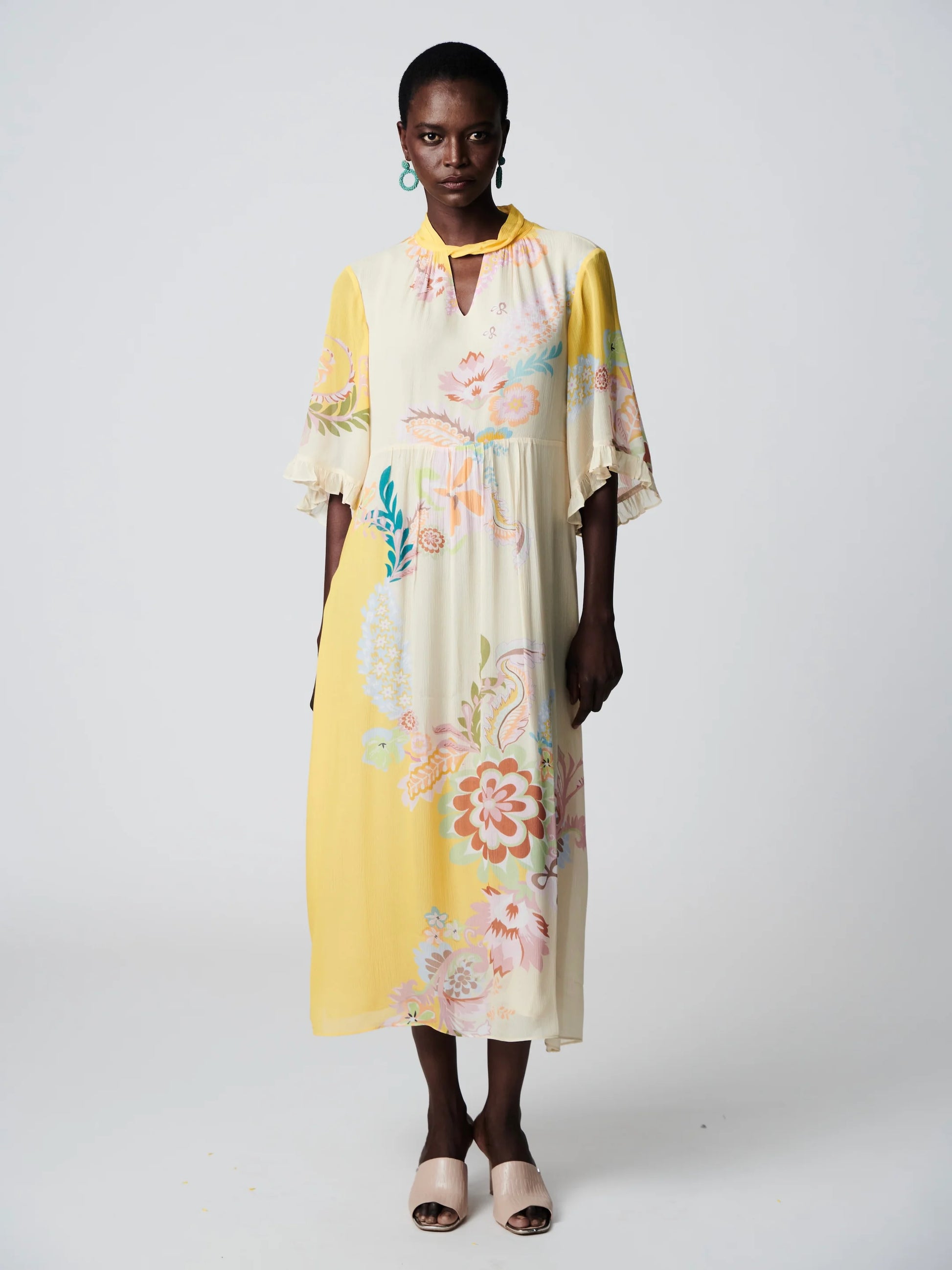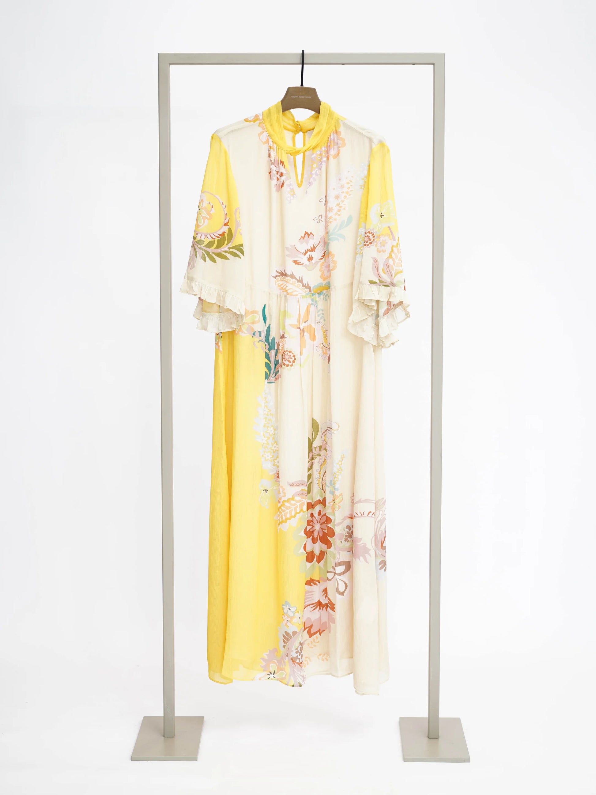Een zwierige jurk van hoogwaardige viscose met een delicate bloemenprint over de hele stof en vrouwelijke, geplooide mouwen. De smalle opstaande. . . Lees meer