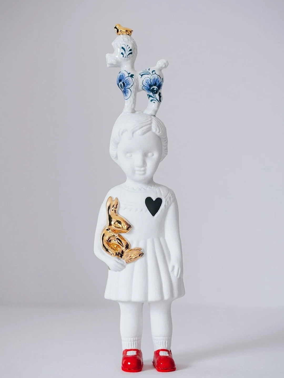 Pupke met Poedel kan gebruikt worden als vaasje. Het Delftsblauwe patroon is voor Lammers&Lammers ontworpen. De gouden details zijn 12% echt. . . Lees meer