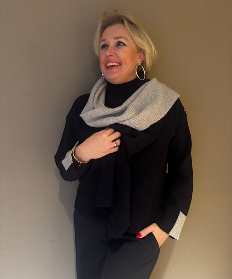 Sjaal van HET Amsterdam in de kleurencombinatie blauw / grijs.