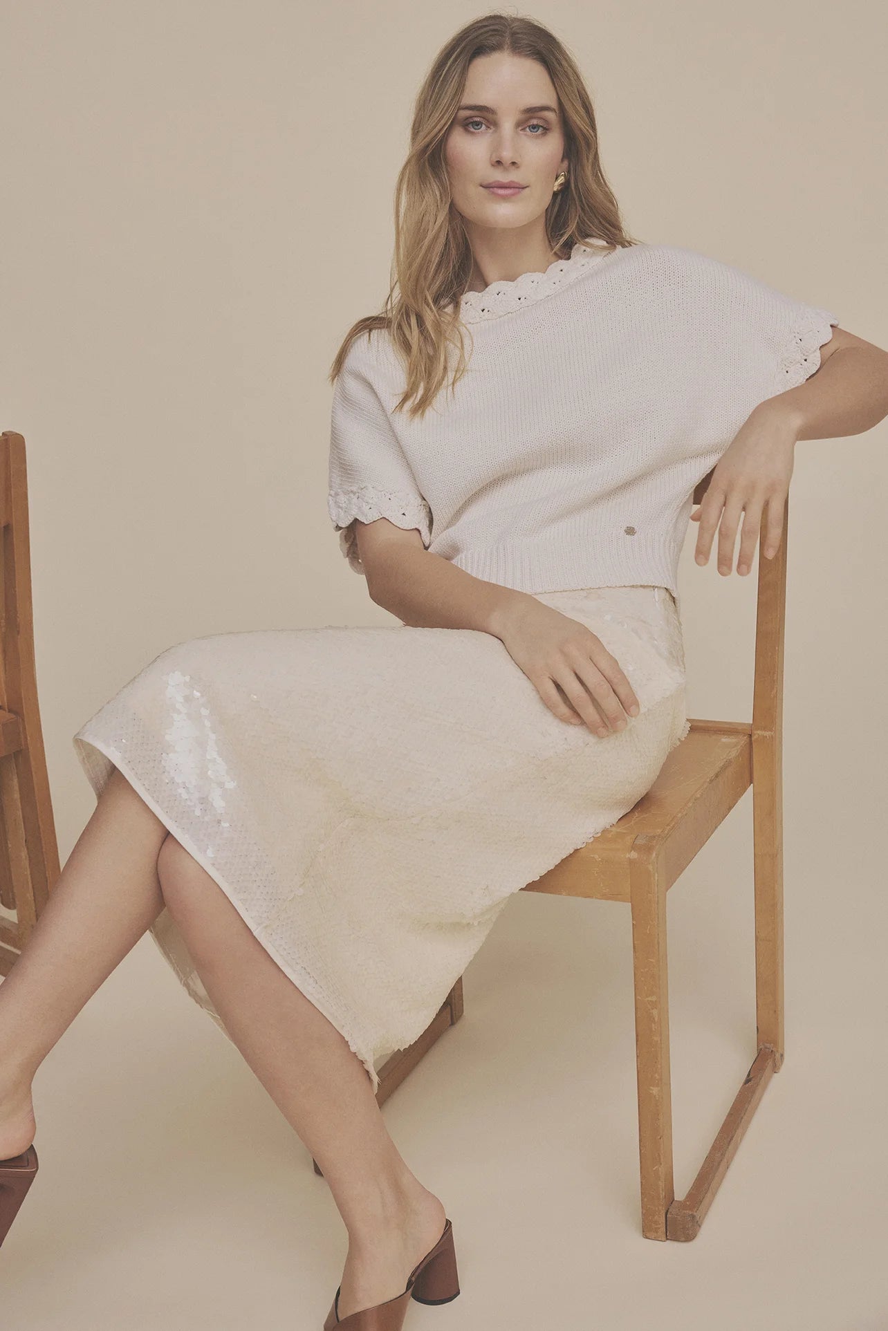 Gebreide top met mooie afwerkingen langs de halslijn en mouwen.