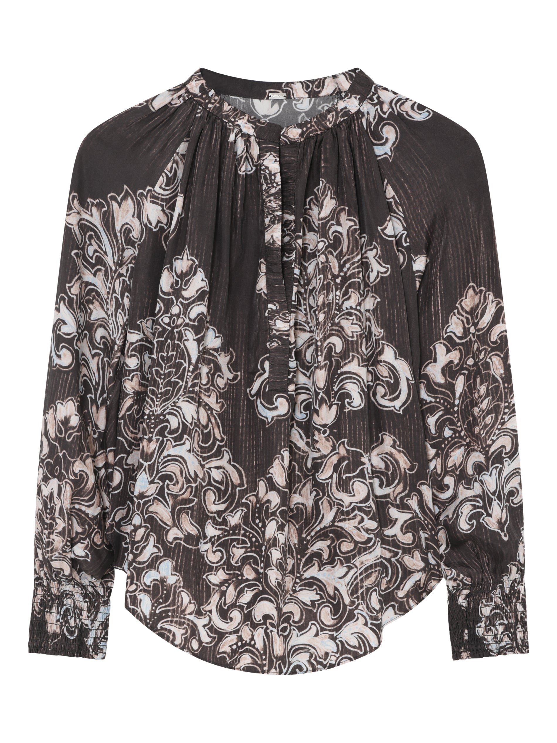 Wijdvallende top met een v-hals en brede, elastische manchetten.