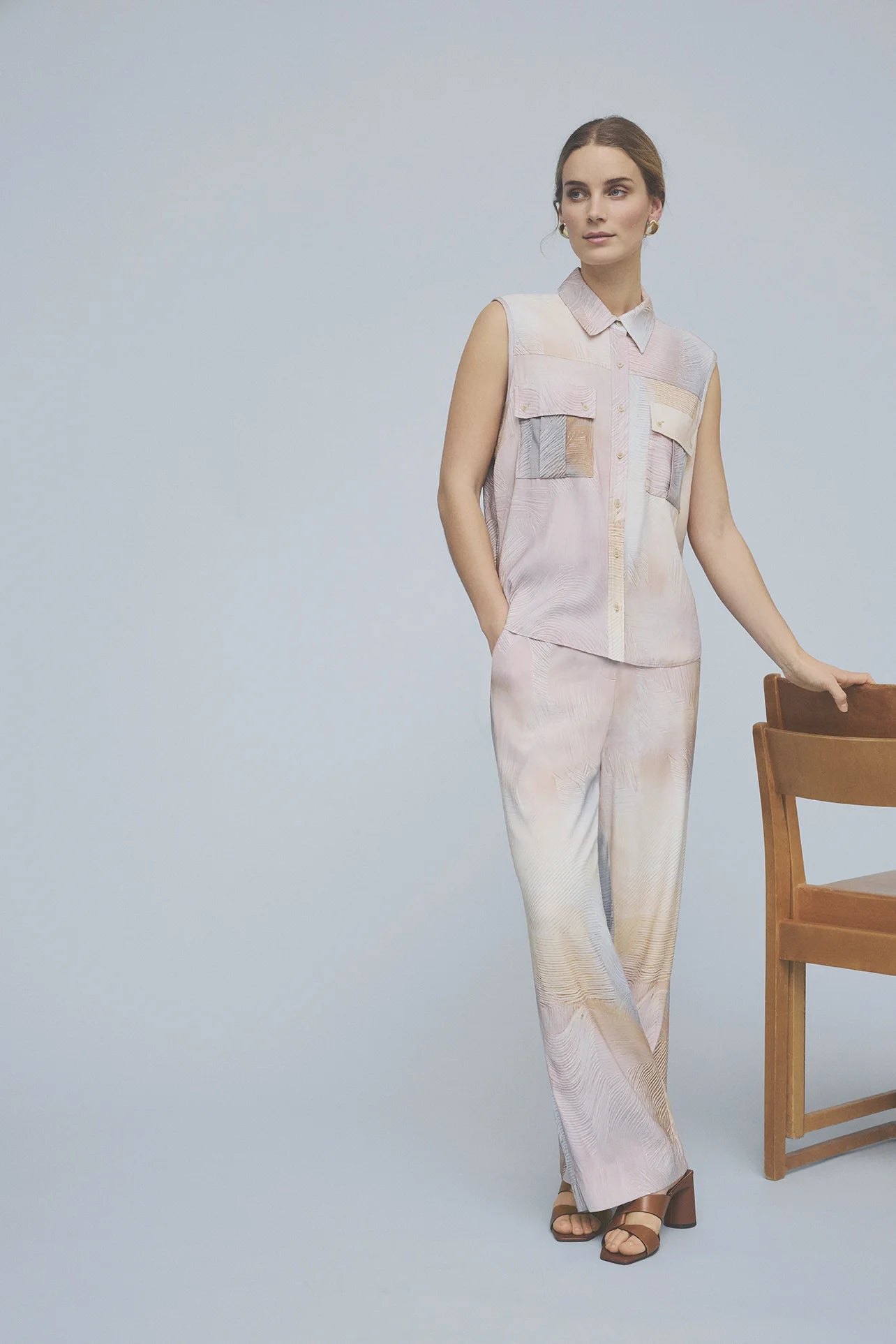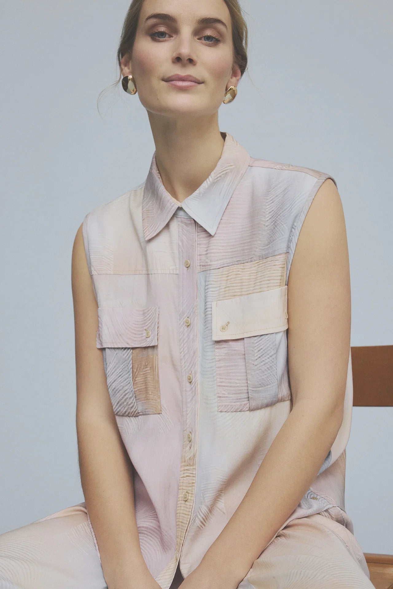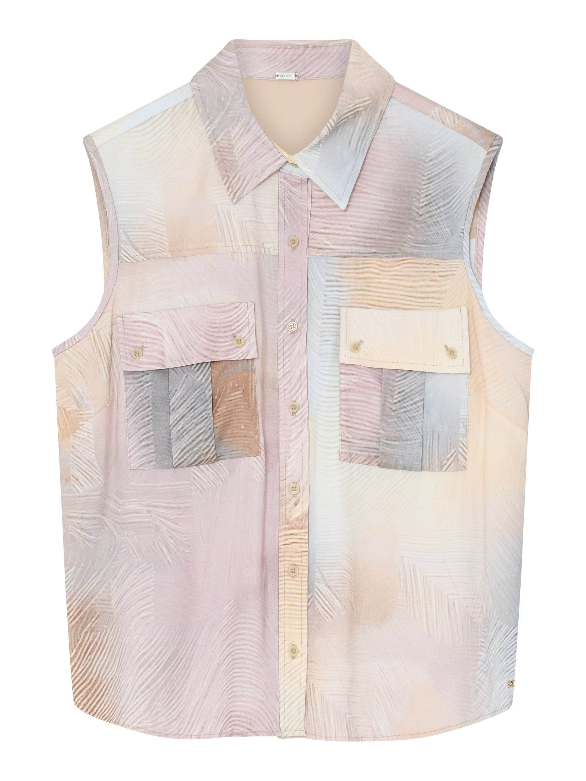 Mouwloze top in pasteltinten van Gustav met klepzakken.