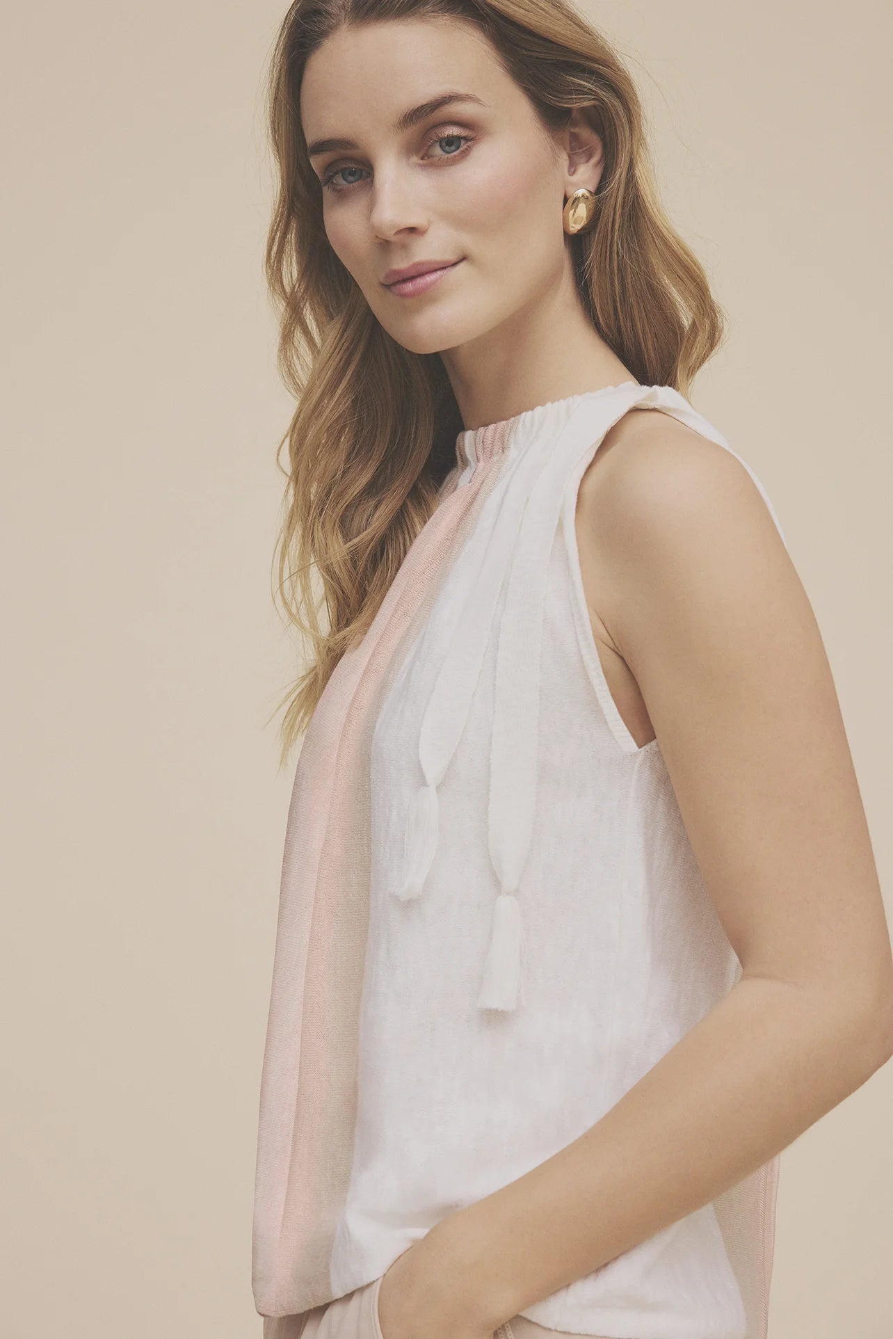 Gestreepte haltertop van Gustav in zachte tinten. Kwaliteit:  86% Katoen / 11% Linnen en 3% Viscose. Lees meer