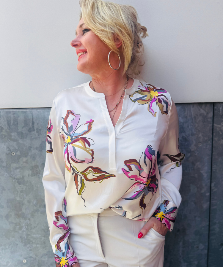Ruimvallende top van Herzen's Angelegenheit. V-hals met 1 knoopsluiting.
