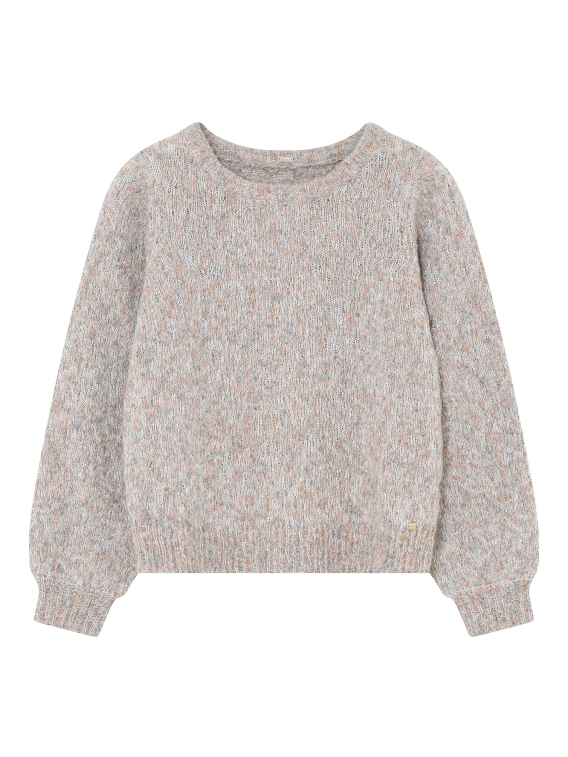Gemeleerde trui van Gustav met een ronde halslijn. Deze trui is gebreid van bolletjesgaren.