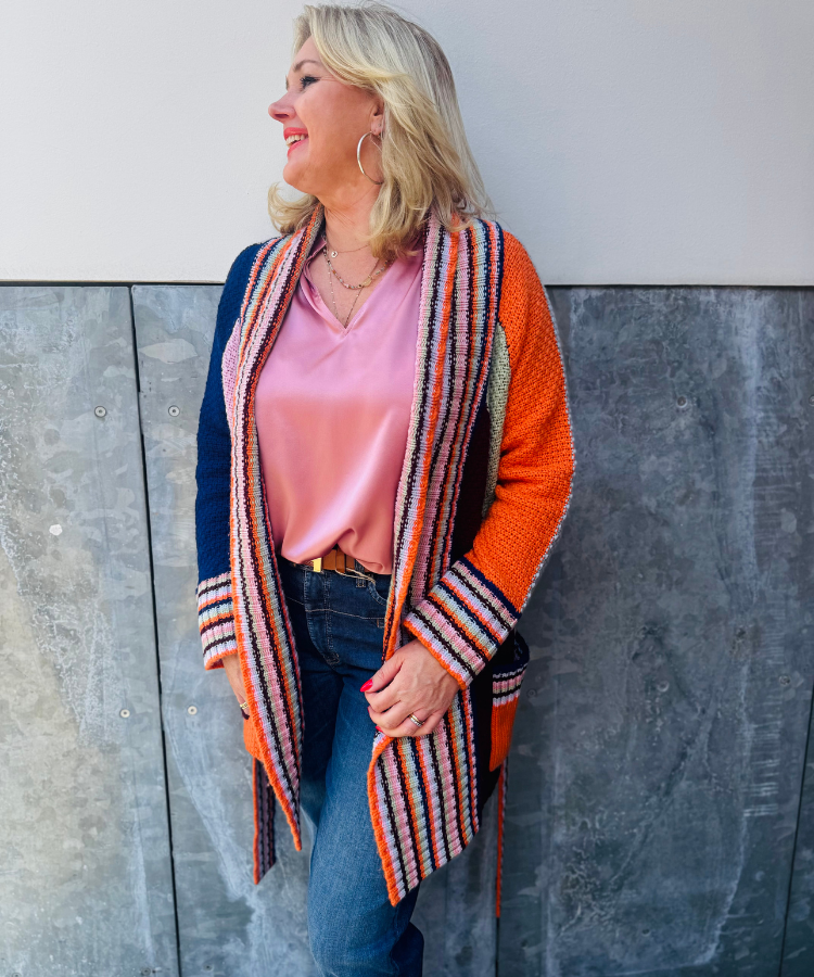 Bont, gekleurd vest Herzen's Angelegenheit. Sjaalkraag, opgestikte zakken en een bijpassende centuur.