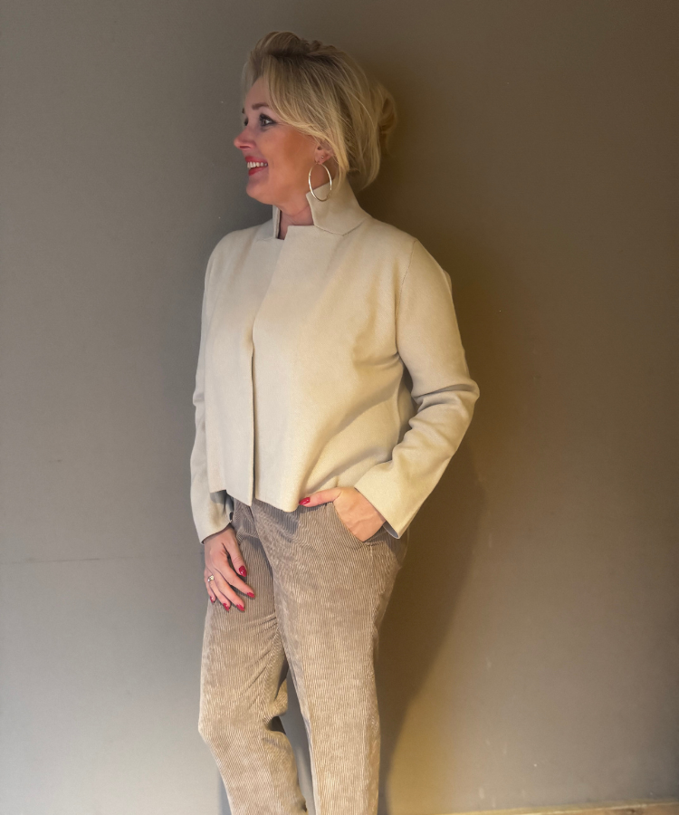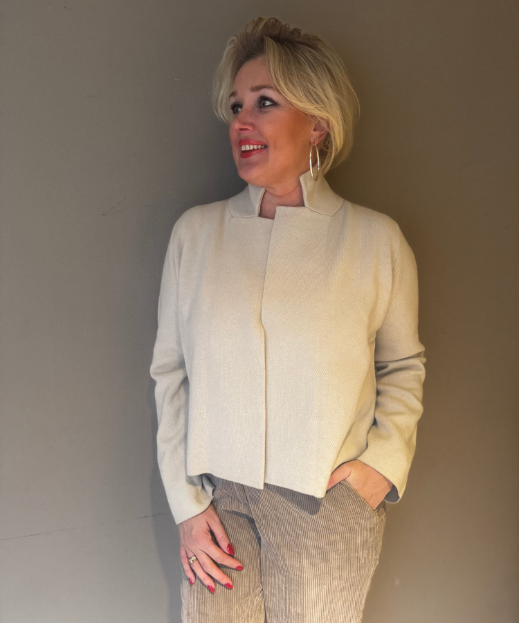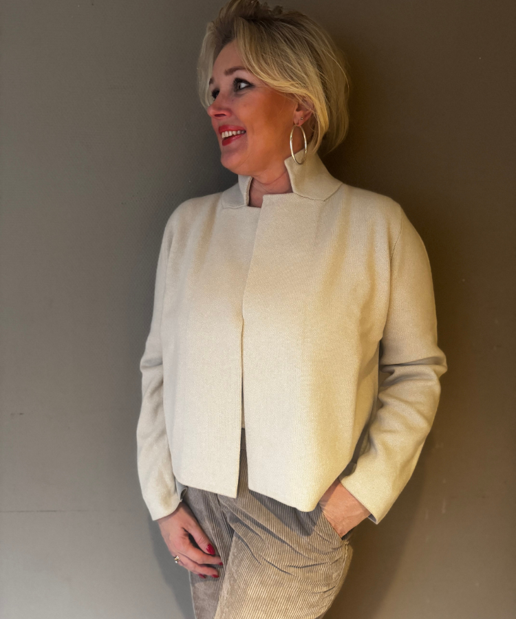 Lekker vest van HET Amsterdam met opstaande kraag en geen sluiting.
